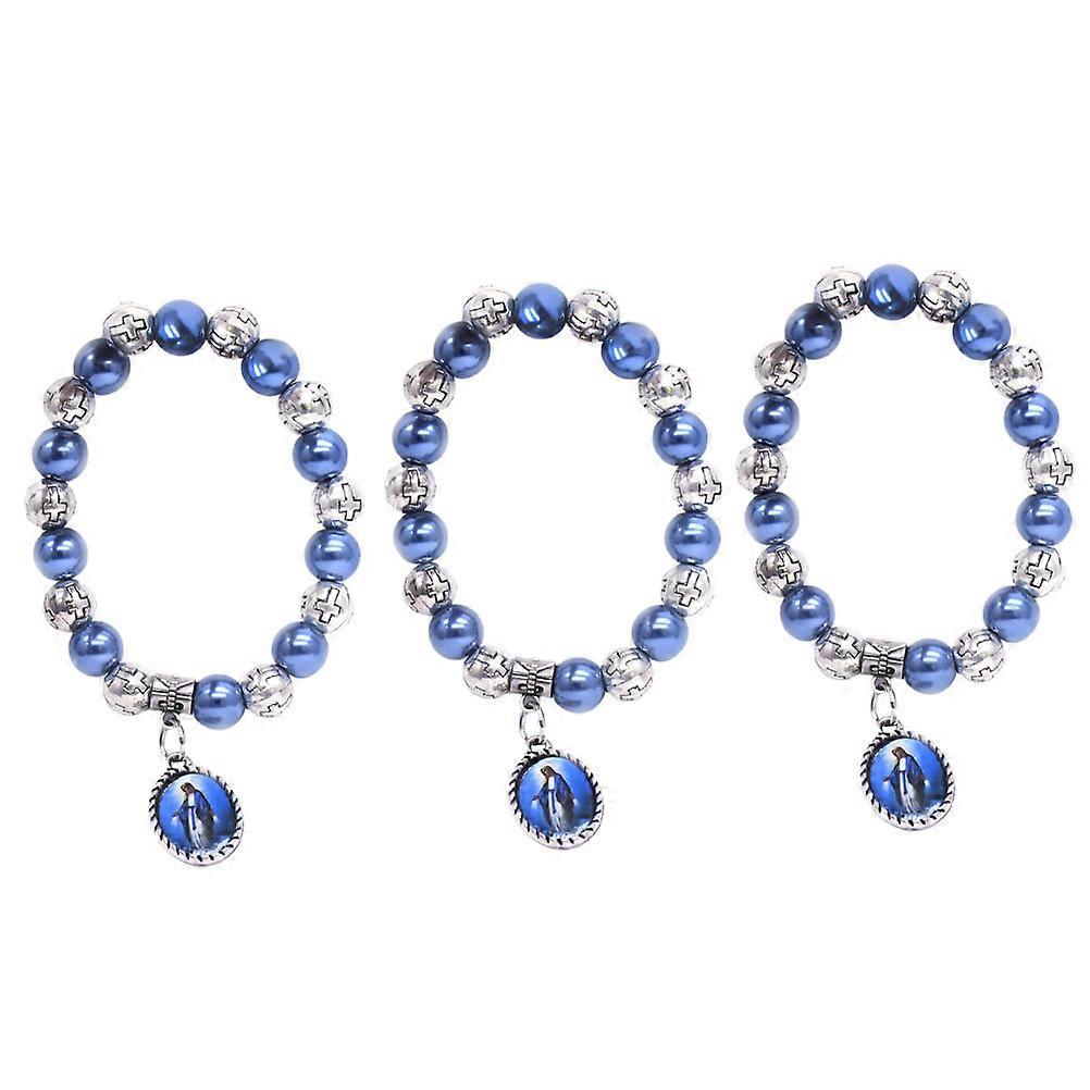 Blessing Cross Bracelets Blue Religious Occasions Zinc Alloy 3Pcs