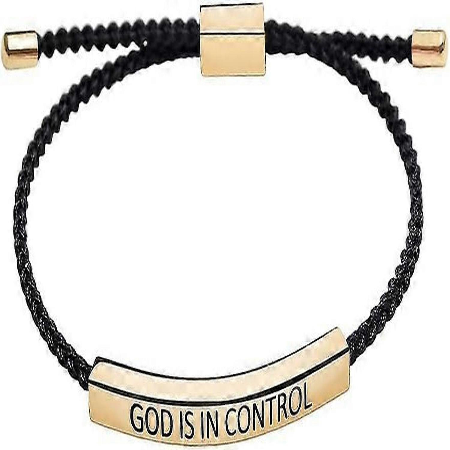 God Is In Control Inspirational Bracelets for Women, Christian Faith Bracelets Handmade Letter Braided Bracelet Adjustable Stainless Steel for Women G