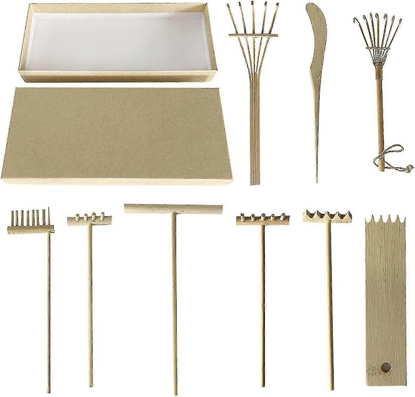 9pcs Natural Bamboo Rakes for Zen Garden Meditation, Mini Sandbox Tools Set with Sand for Adults Stress Relief & Relaxation