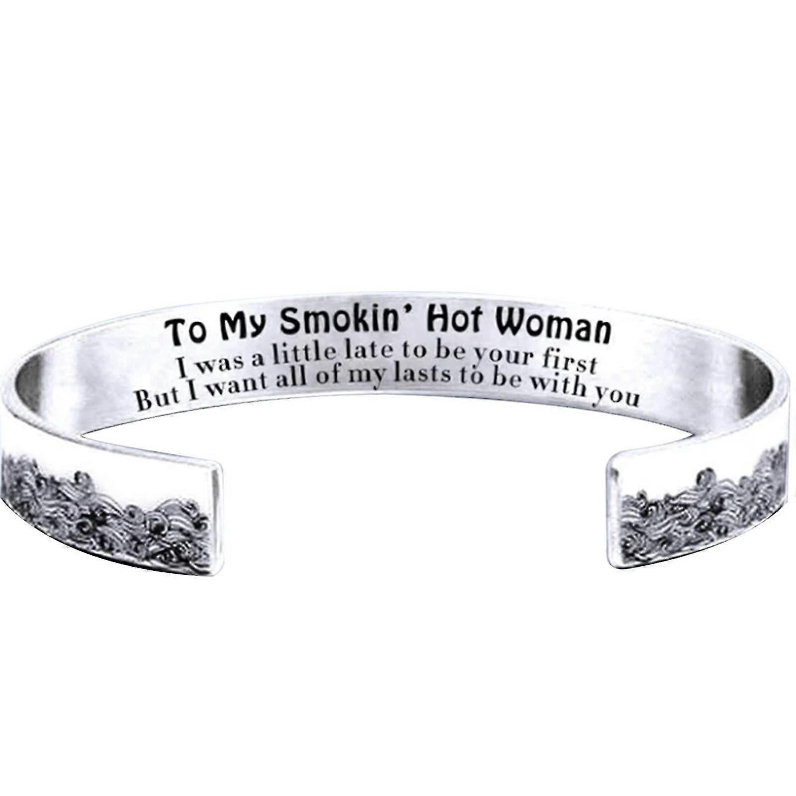 To My Smokin' Hot Woman Wave Cuff Bracelet Diy Lettering Titanium Steel Open Adjustable C-shaped Bracelet
