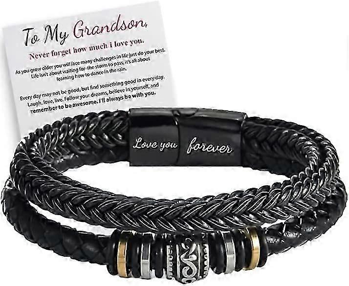 to My Grandson Braided Leather Bracelet I Will Always Be with You Men Handmade Braided Rope Adjustable Wristband Bracelet Gift for Grandson (PrettyJ)