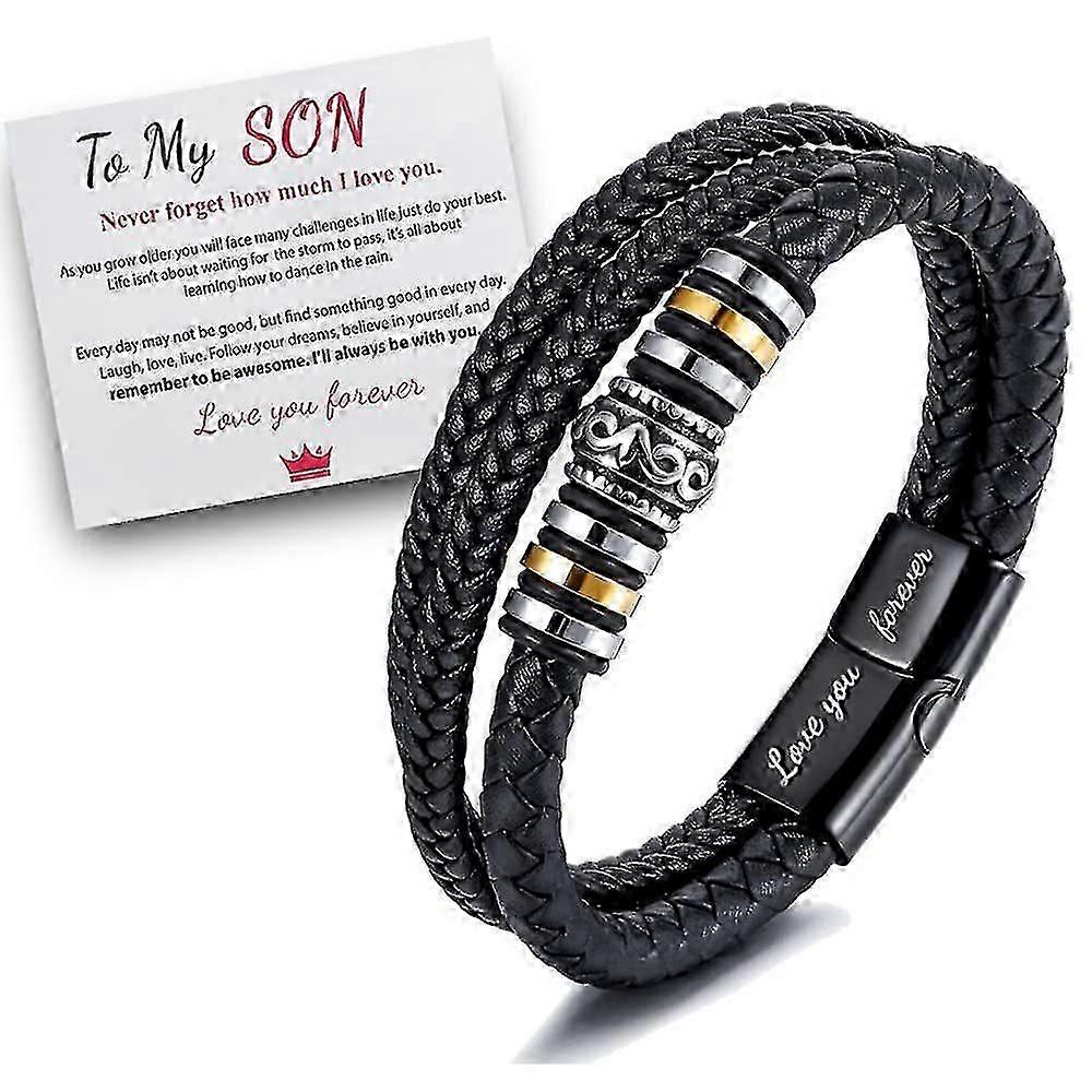 To My Son Love You Forever Leather Braided Bracelet Wristband + Gift Card Mens