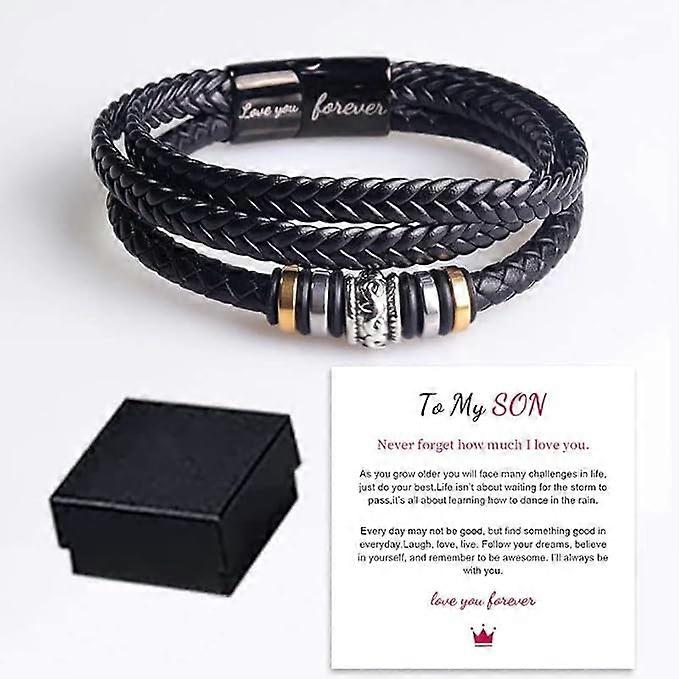 To My Son Love You Forever Bracelet Braided Leather Bracelet For Men Stainless Steel Personalized Engraved