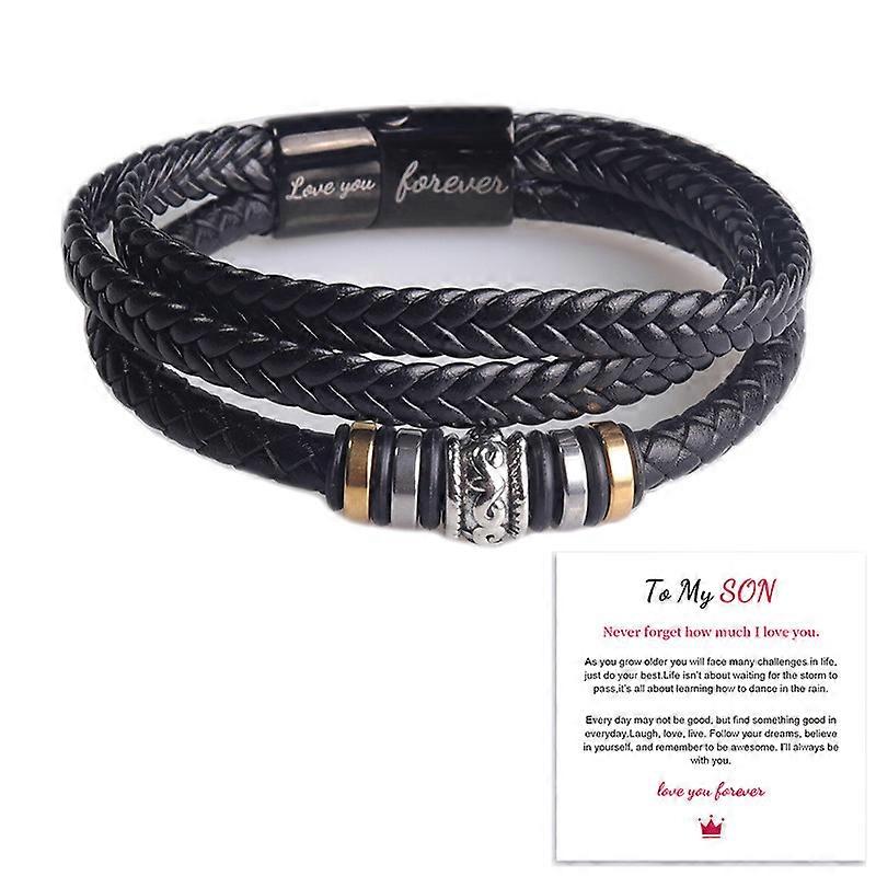 To My Son Love You Forever Bracelet, Braided Leather Bracelet For Men, Stainless Steel Personalized Engraved Bracelet