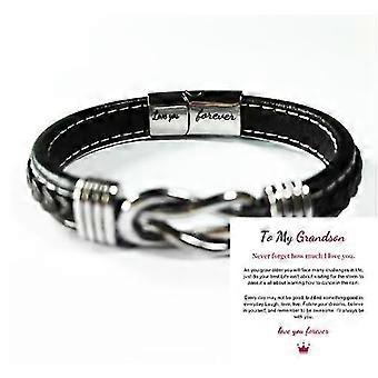 私の息子に私の孫のブレスレットに、あなたを永遠に愛しています編みこみレザーブレスレットメンズ編みこみレザーノットブレスレット-