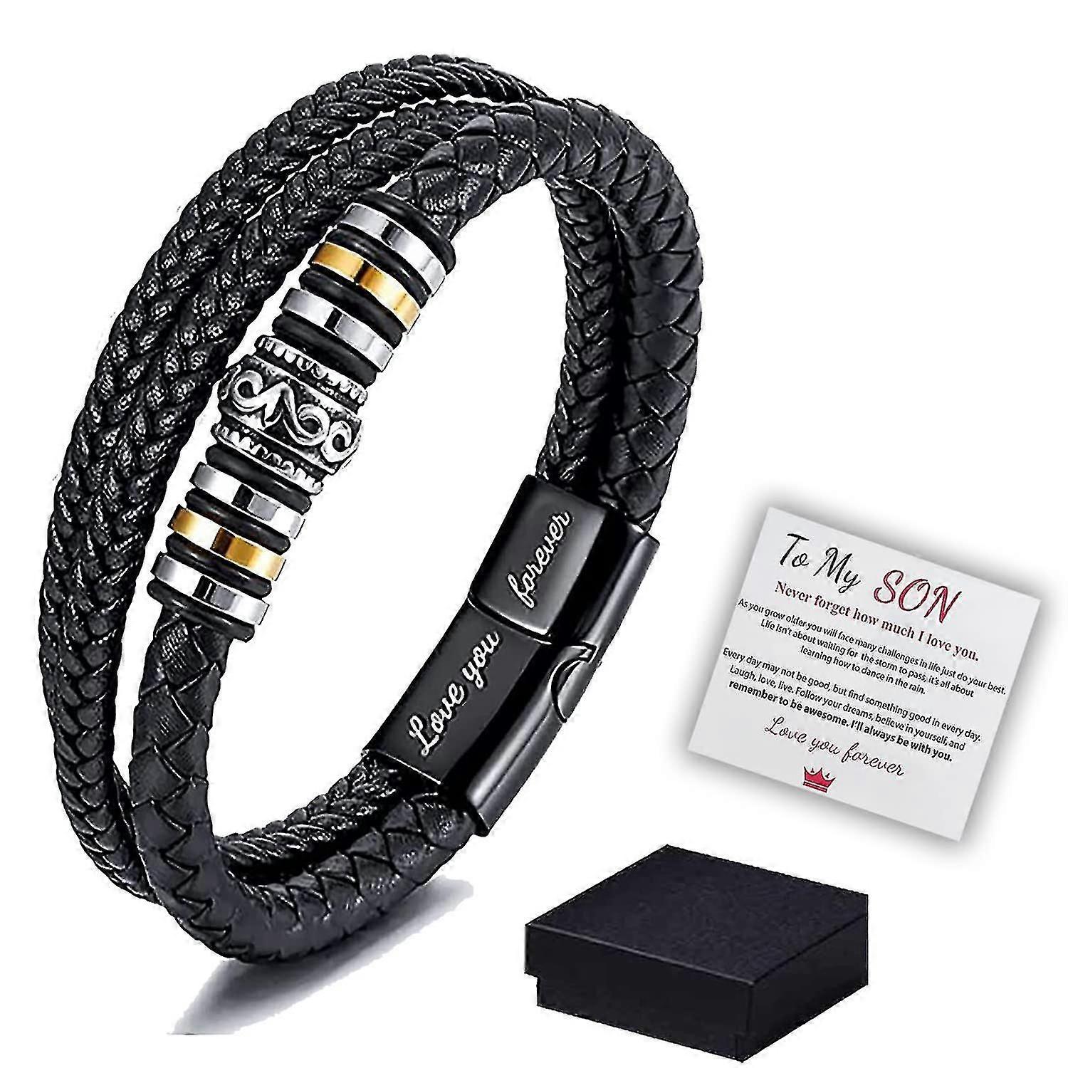 To My Son - Love You Forever Leather Bracelet ,mens Braided Leather Bracelet Bangle Wristband