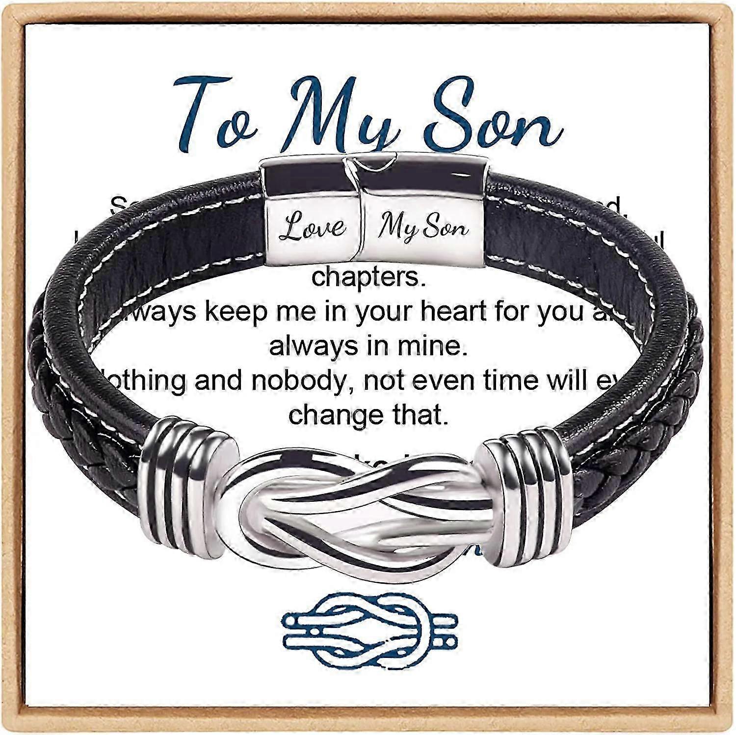 To My Son Bracelet, Forever Linked Together Braided Leather Bracelet, Stainless Steel Magnetic Closure Leather Knot Cuff Wristband, Back to School Gif