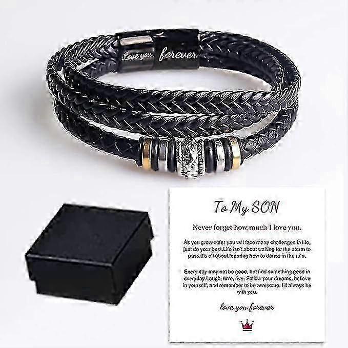 Eternal Love for My Son Braided Leather Bracelet Men's Stainless Steel Custom Engraved