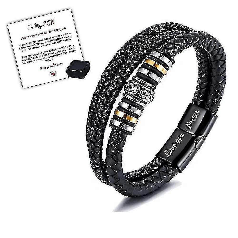 To My Son - 'i Will Always Be With You' Braided Leather Bracelet, Stainless Steel Inspirational Wristband For Son -Z