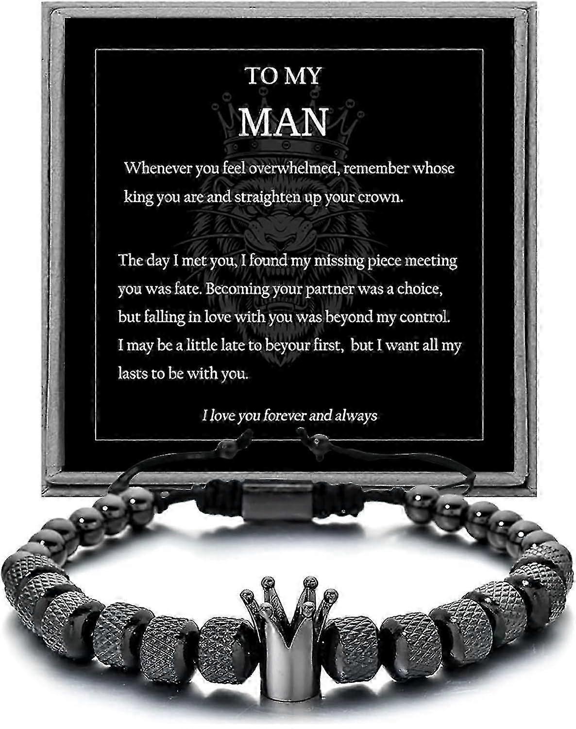 To My Man Bracelet- Straighten Your Crown For Boyfriend Husband, Adjustable Bead Men's Stainless Crown Anniversary Christmas Gifts-B, Happy H