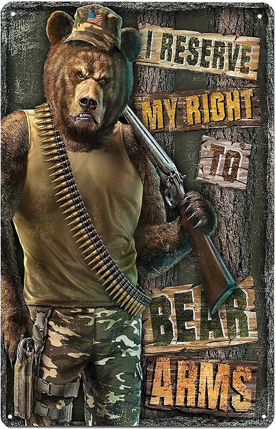 I Reserve My Right To Bear Arms, Retro Antique Metal Tin Sign Wall Decor