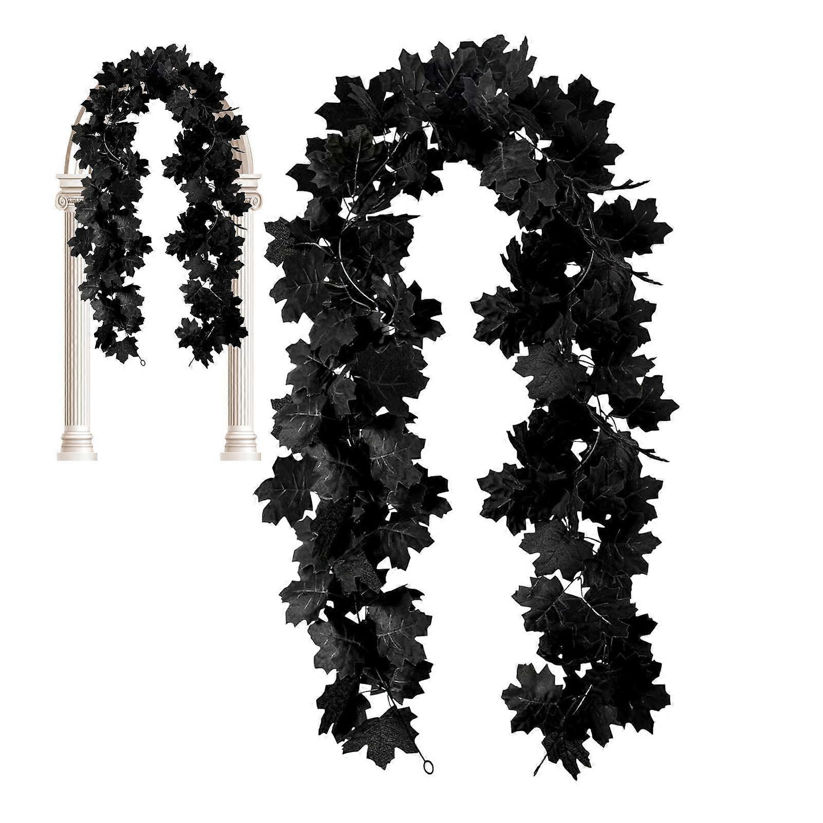 Autumn Garland Outdoor, Autumn Decor 2 Pieces Black Realistic Maple Leaf Garland