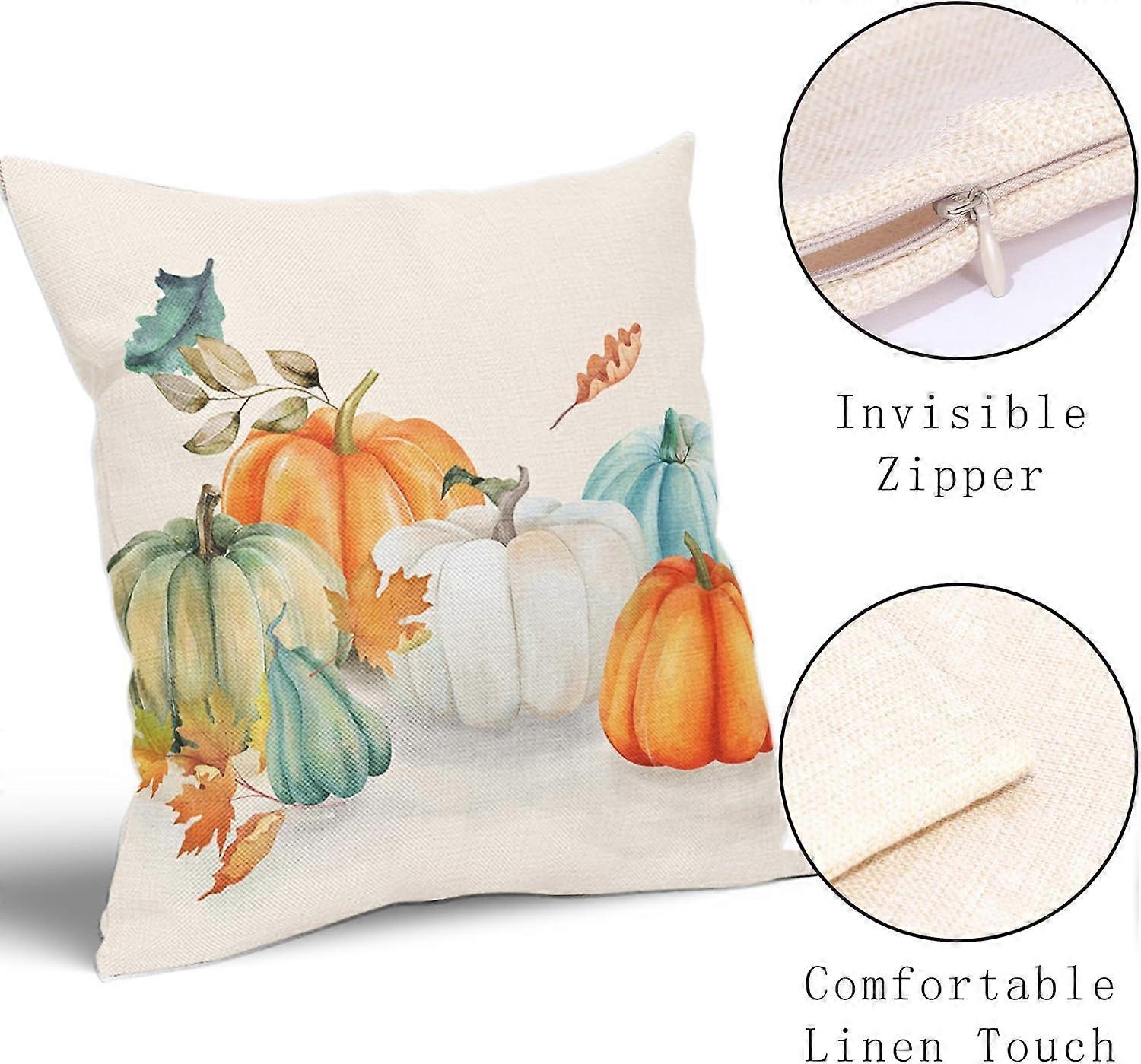 Fall Maple Leaves Pillow Covers 16X16 Inch Teal Orange White Green Pumpkins Decorative Couch Pillow Cases Set of 2 Autumn Thanksgiving Throw Pillows F