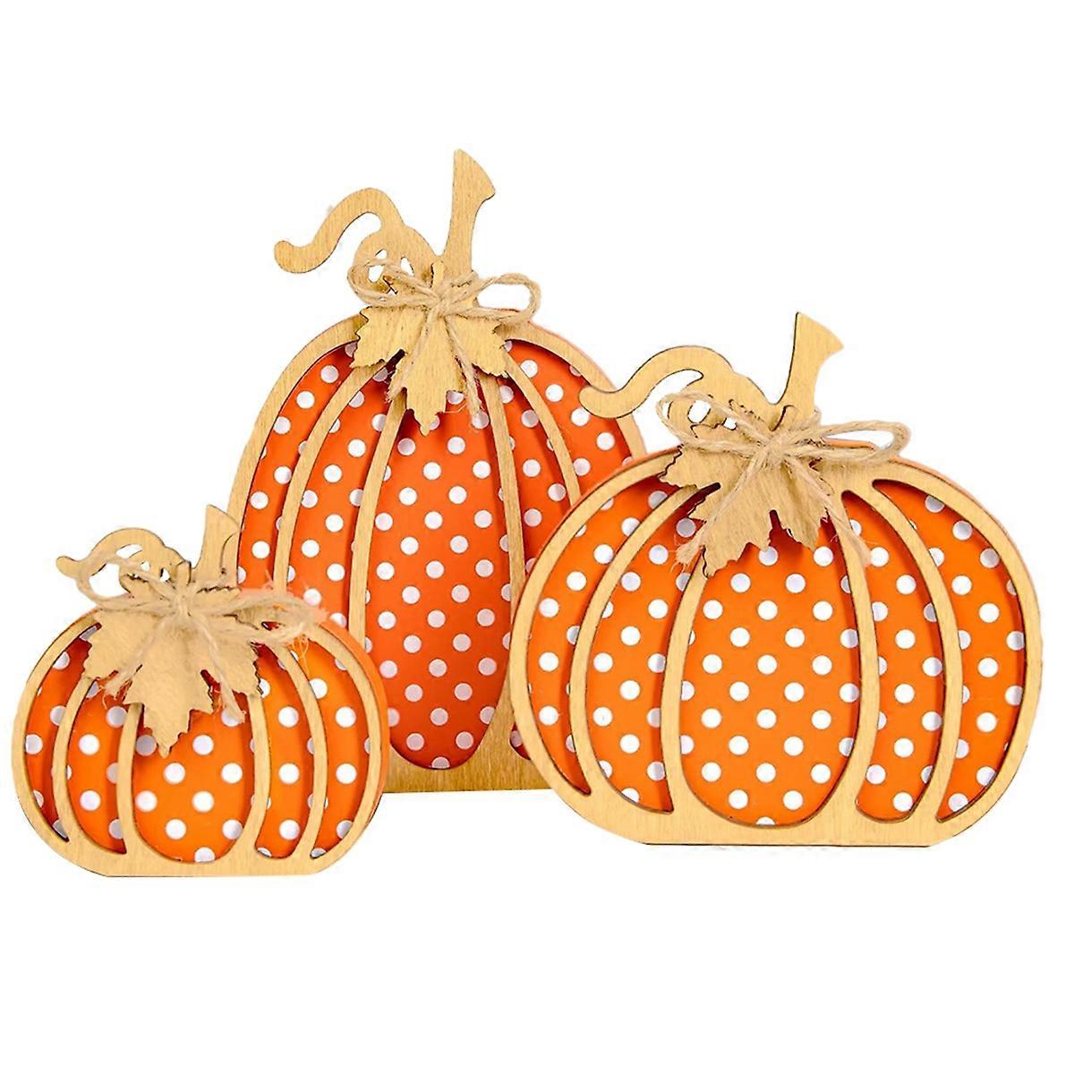 Charming 3D Pumpkin Decor: Elevate your fall decor or thanksgiving decorations with these delightful wooden pumpkins! Their layered wood construction creates a stunning, eye-catching 3D effect, making them a standout piece for any room Vibrant & Stylish : Each pumpkin decorations features a playful polka dot pattern, adding a fresh, modern . This charming contrast marries rustic wood with contemporary style, ensuring they blend beautifully with any home fall aesthetic Adorable Rustic Accents: Finished with charming rustic twine and a wooden maple leaf, these pumpkin fall decorations are the perfect crowning touch for your mantel, table, tiered tray. These details make them ideal for farmhouse chic or adding cozy fall character throughout your home Premium Quality & Lasting Appeal: Expertly crafted from wood, these fall decorations for home boast superior construction for years of enjoyment. Sturdy, reusable, and built to last, they'll become your favorite heirloom-quality fall staple season after season Endlessly Versatile Home Decor & Gift: up your living room, bedroom, or office! These versatile wooden pumpkins seamlessly enhance any autumn setting. They also make a thoughtful and housewarming gift or a cherished Thanksgiving present for fall enthusiast Color: As Shown Material: Wood Package Contents: 3*Fall Pumpkin Decor Only the above package content, other products are not included. Note: Light reflection and different displays may cause the color of the item in the picture a little different from the real thing. The measurement allowed error is +/- 1-3cm.