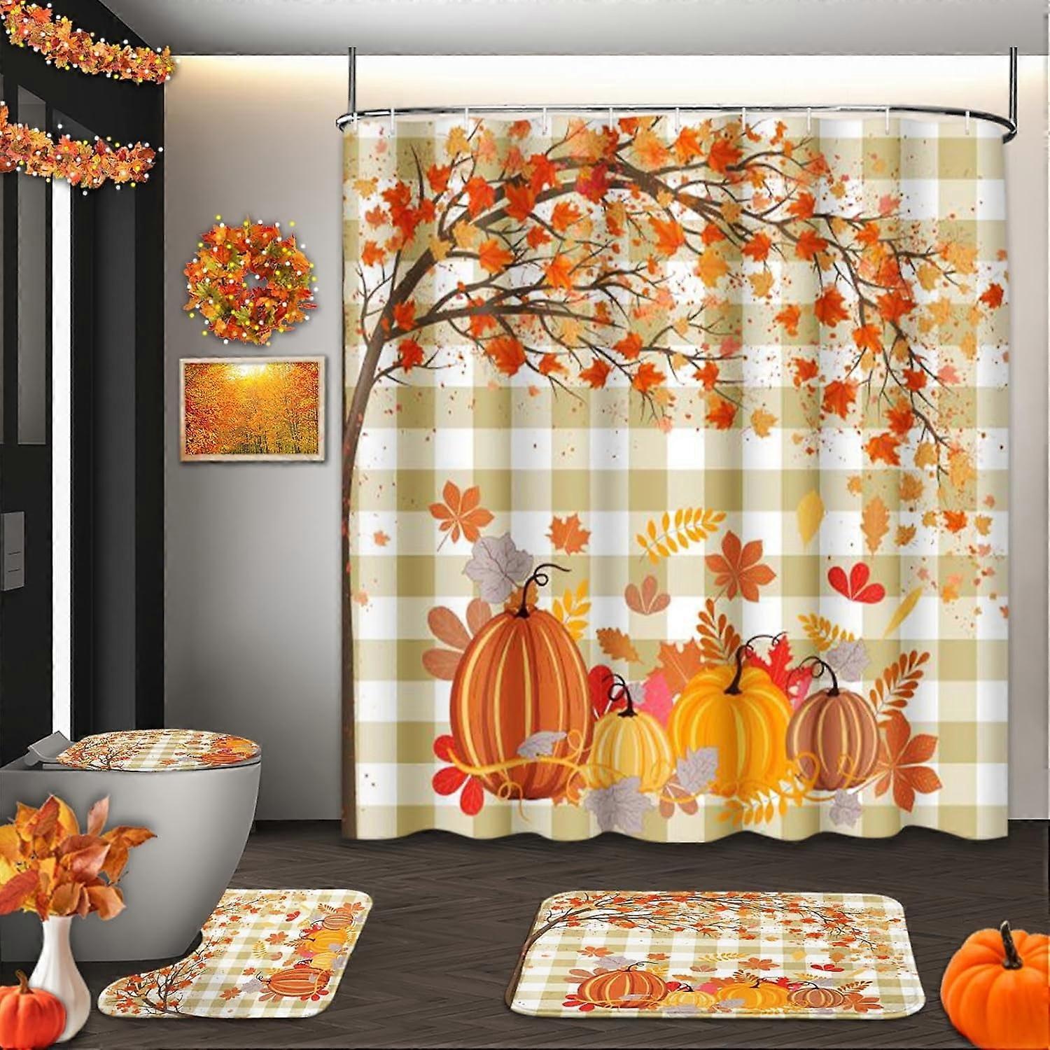 Bathroom Decor Sets: Fall bathroom sets 4pcs shower curtain is made of good quality polyester fabric, waterproof and durable. The bath mat/U type rug made from soft flannel, feature skid-resistant backing, durable, non-toxic and safe, and Never Cause Any Harm To You And Your Family.