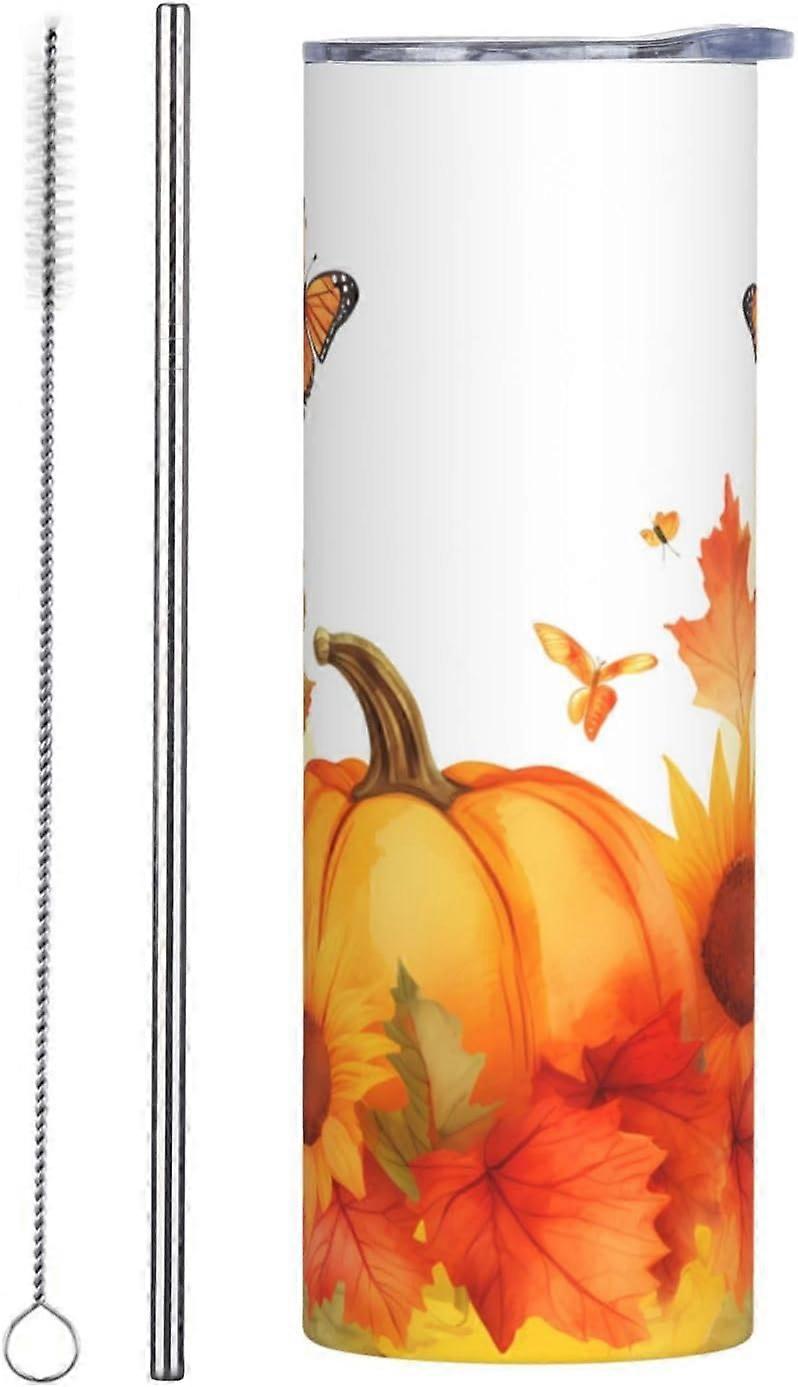 Fall Sunflowers Pumpkins Stainless Steel Insulated Tumbler 20 OZ, Butterflies Coffee Mug Cup with Splash-Proof Lid and Straw for Car Home Office Outdo