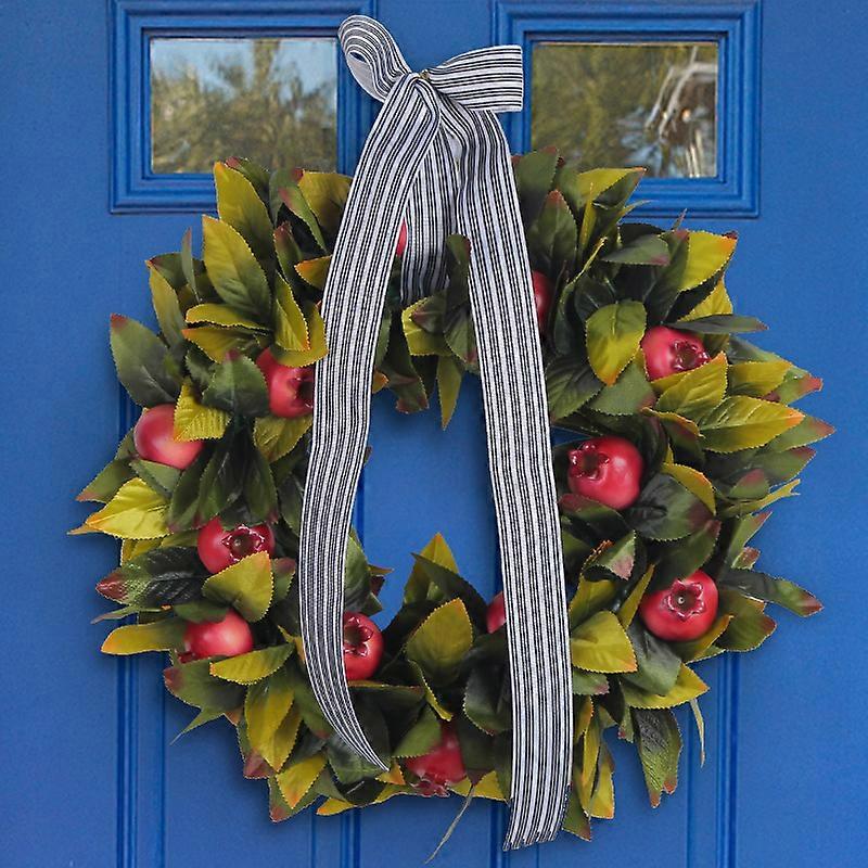 Autumn Berry WreathThe autumn wreath is made of artificial green leaves and red pomegranate wreath. The handmade wreath is very natural and realistic, does not require special cleaning and maintenance, and is easy to store and reuse.Suitable SizeThe outer diameter of the autumn harvest wreath is about 17 inches.ApplicationThe autumn wreath is suitable for scenes of various styles: doors, porches, walls, holiday decorations, home decorations during the autumn harvest Thanksgiving, creating a simple and comfortable atmosphere. Spend a happy time with family and friends!Easy to maintainThe highly realistic handmade artificial wreath is durable and does not require special maintenance. Just wipe it with a wet tissue or towel to keep it tidy.ArrangementThe wreath will be packed in a box for safe transportation, so you need to unfold the leaves and adjust the flowers to the best shape.
