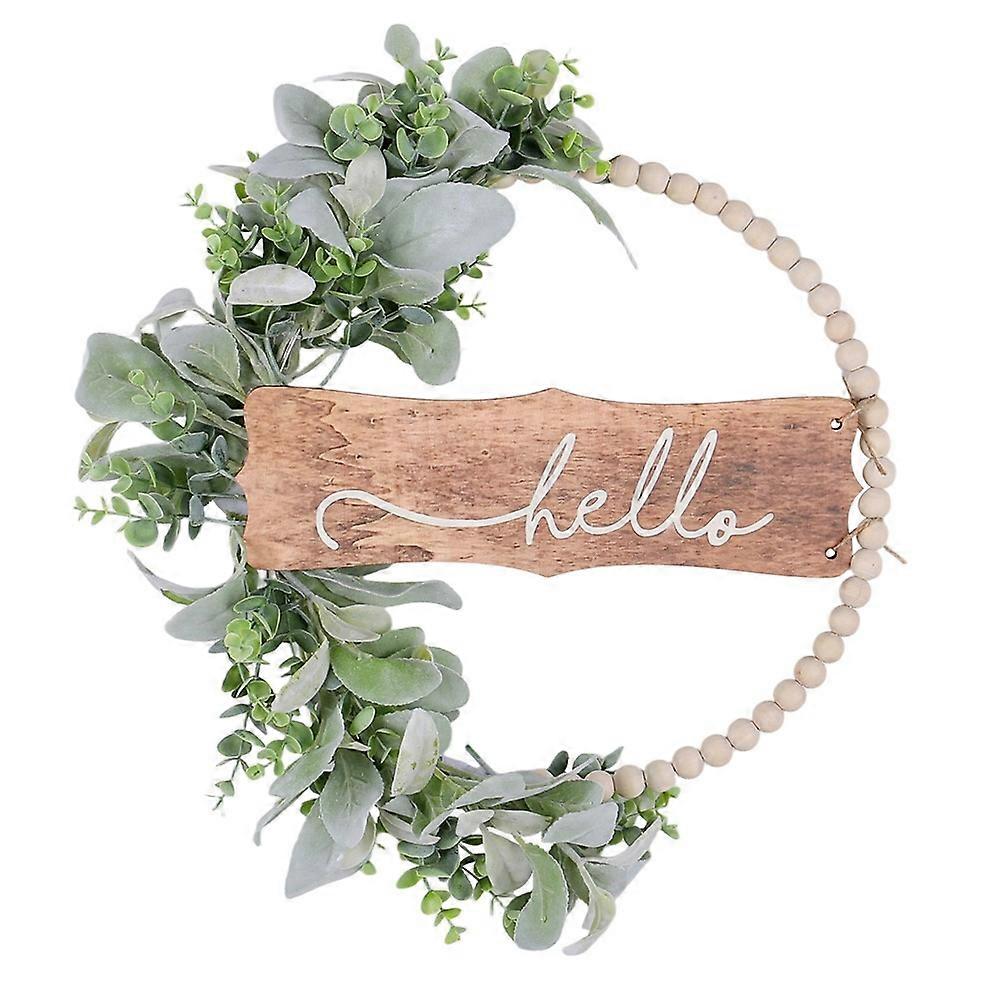 Autumn Artificial Wooden Bead Wreath Door Hanger Farmhouse Welcome Sign Rattan Ring Wall Decor