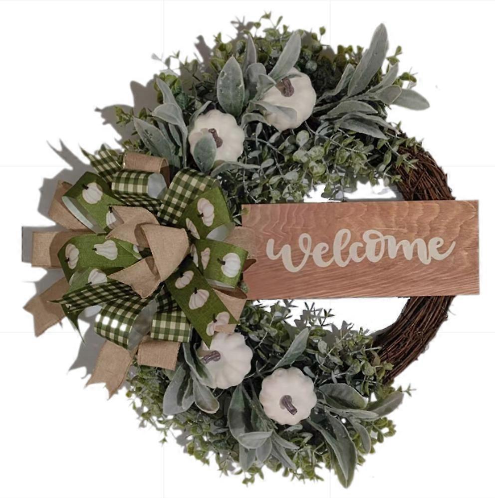 Autumn Country Wreath White Pumpkin Green Ribbon Door Hanging Front Garden Wall Fireplace Decorations