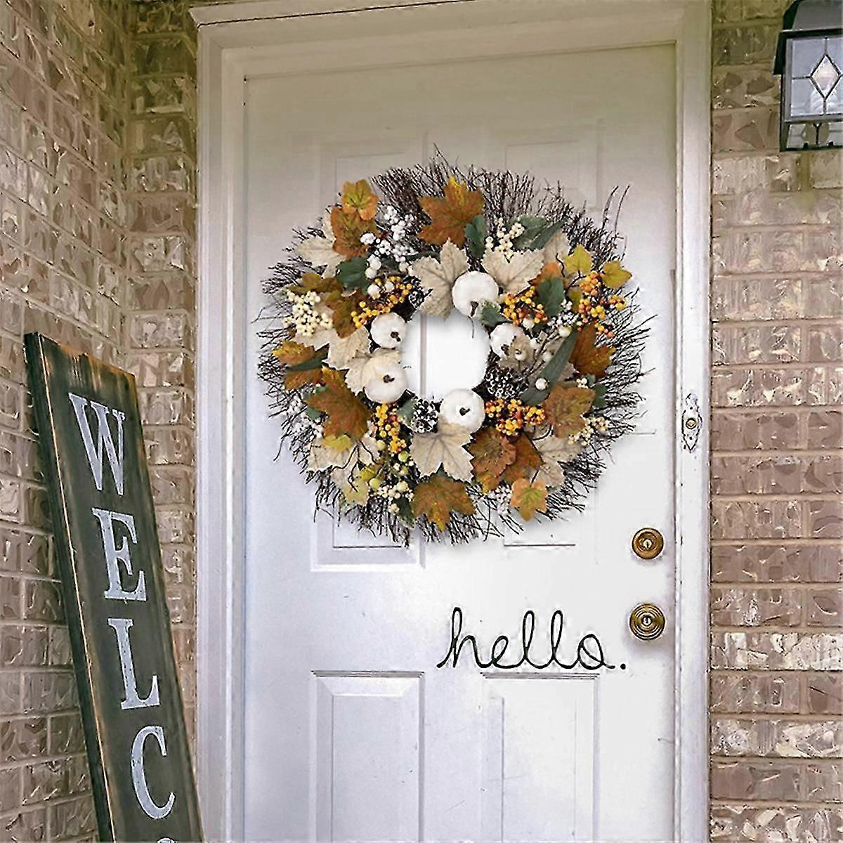 Autumn Thanksgiving Decorations Harvest Season Maple Leaf White Pumpkin Wreath Porch Wreath Pendant