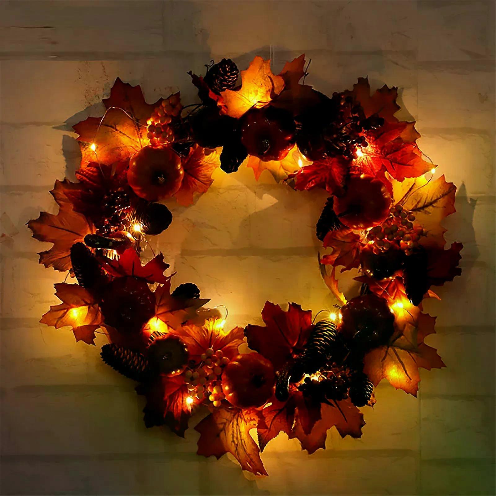 Autumn Pine Cone Pumpkin Wreath Rattan Ring Artificial Flowers Garland Pendant Home Decoration Accessories Photography Props