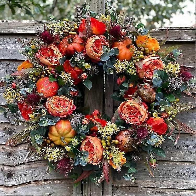 Fall Peony and Pumpkin Wreath - Year Round Wreath, Fall Wreath for Front Door, Artificial Autumn Wreath with Maple Leaf Berry Pumpkin Pinecone Harvest