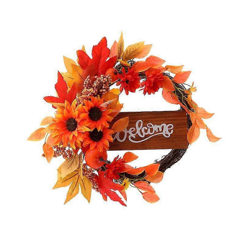 Fall Wreath 18 Autumn Front Door Decor Artificial Harvest Wreath with Wooden Bright Oak Leaves Pumpkin Acorn Berries Thanksgiving Wreath for Indoor Ou