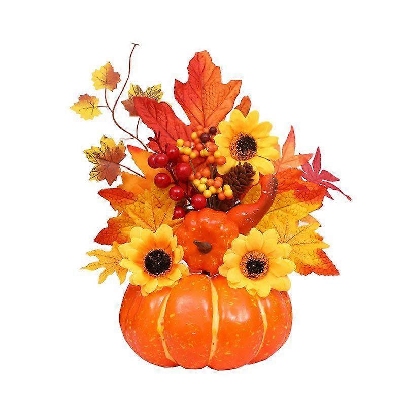Fall Decor - Fall Decorations for Home - Artificial Pumpkin Sunflower and Maple Leaf Berry Pine Cone Bouquet for Thanksgiving Harvest Autumn Tabletop