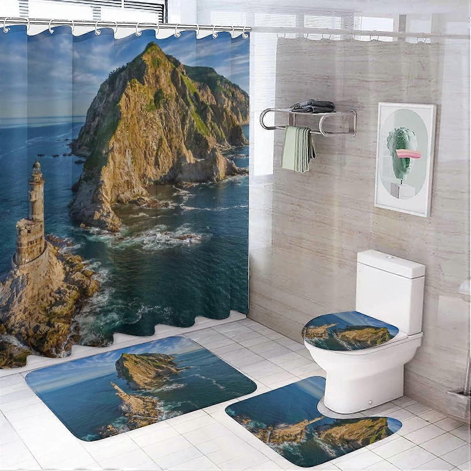 【Prevent Water Splash】Made of durable, water-resistant polyester fabric, this Natural Scenery shower curtain allows water to slide off easily and resists immersion. The non-slip bath mat/U type rug are made of high-quality coral fleece and non-slip bottom, with super absorption and quick drying. 【Size Information】The Natural Scenery bathroom curtain size: 70.9" L x 70.9" W, the bath mat/rug size: 29.1" L x 17.5" W, the toilet lid cover size: 17.3" L x 14" W, the U shape rug size: 17.7" L x 13.4" W. This bathroom sets size is suitable for most bathrooms or toilet. 【High Definition Printing 】Natural Scenery theme shower curtain is graphics printed with state of the art of high definition digital printing technology, features vibrant colors. Clear and beautiful patterns make your bathroom or toilet more stylish and have a new look. 【A variety of choices】Natural Scenery Bathroom four piece set are very suitable for your house, motel, hotel, dormitory, etc. The design is exquisite, which can set off the high-grade atmosphere of your bathroom, which is the best choice for your decoration. 【Easy to install】We offer you 12 hooks for free. You don't have to worry about how to install it. 12 reinforced top joint grommets for easy hanging; non slip bath mat/carpet and toilet lid matching.
