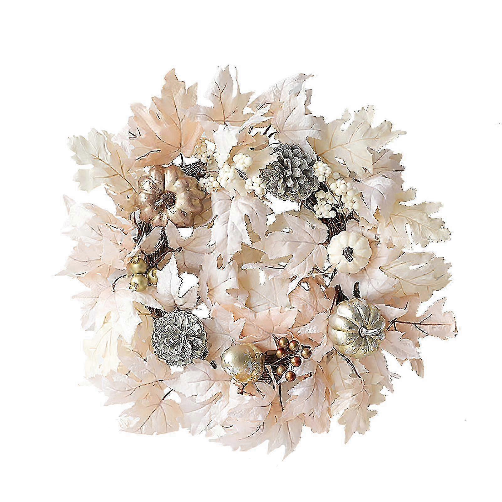 Fall-Themed 50cm White Maple Leaf & Pumpkin Wreath for Home Decor