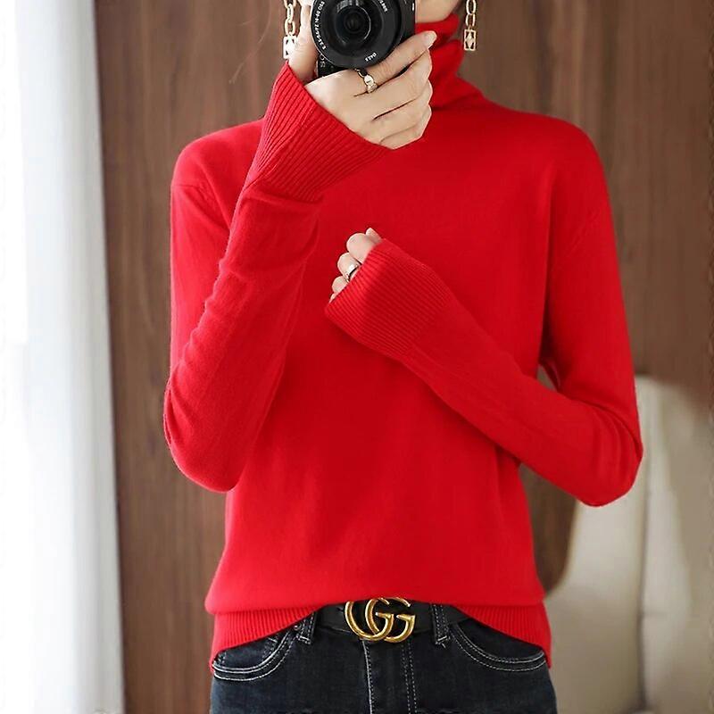 Autumn/Winter Women's Top Stack Collar Pullover Korean Fashion Casual Knit Sweater Long Sleeve Soft Solid Color Bottoming Shirt