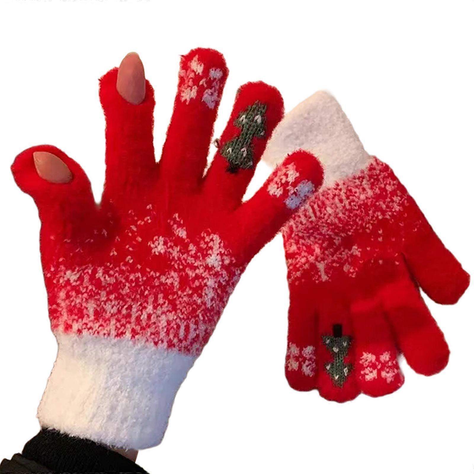 Screentouch Gloves for Autumn Winter Warm Liner Gloves for Female Girl Christmas Hand Warmer Women Daily Wear Handwear Red