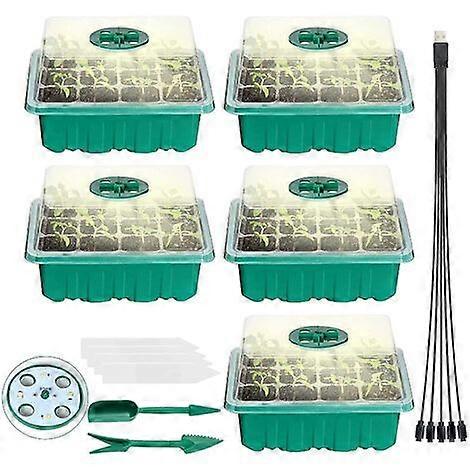 5 Pack Plant Seed Starter Trays with Grow Lights for Planting Seeds 60 Seedling Cells Organic Plant Starter Kit with 5 Labels and 2 Transplant Tools (