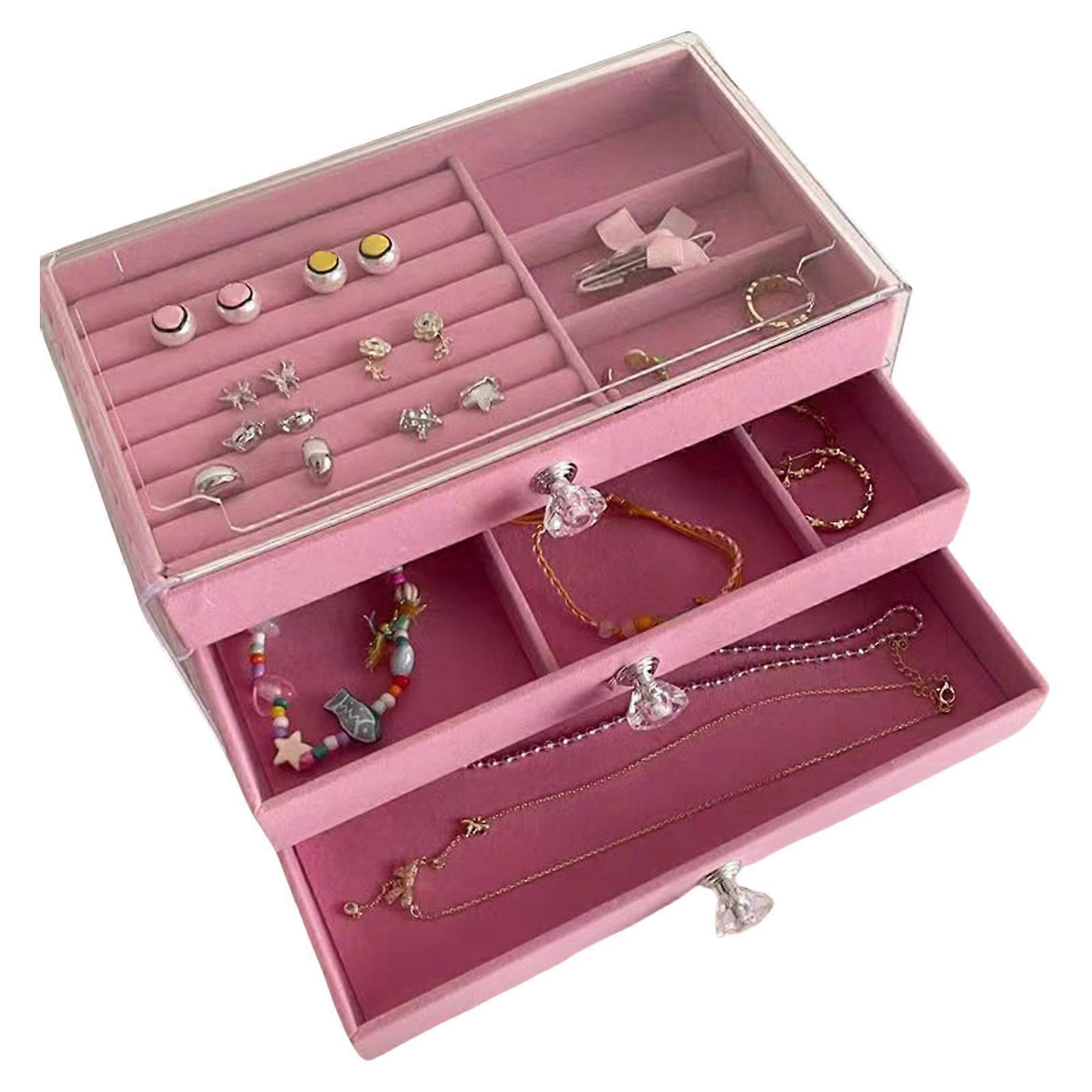 Stackable Jewelry Holder Case with Soft Velvets Interior Storage Box for Bracelets and Accessories Jewellery Organizer Pink