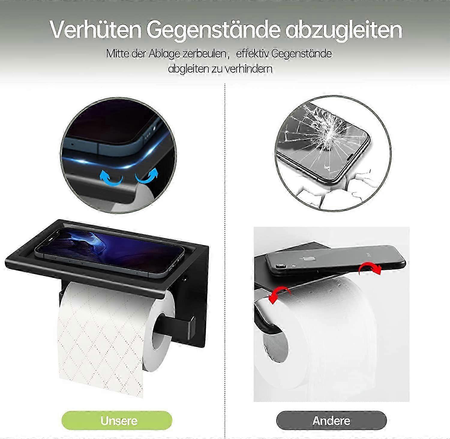 Toilet paper holder without drilling, aluminum toilet paper holder with 17 cm shelf, self-adhesive toilet paper holder with 2 adhesive hooks, wall-mou