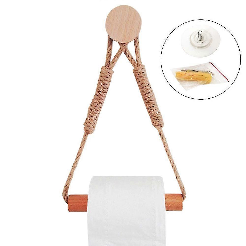 The toilet paper holder ismade ofrope and beech, which is b.Rope Length: 75cm/29.5inch. Multi-function holder, easy to use. You can hang a towel or paper towel.