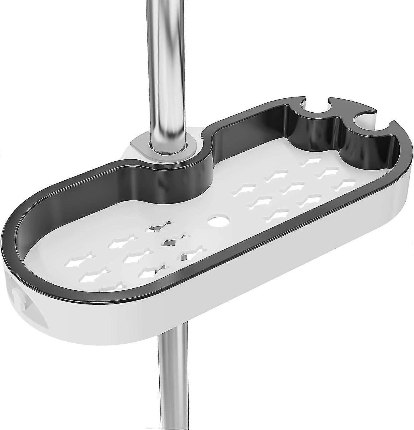 This Shower Soap Dish Is Suitable For Shower Rods With A Diameter Of 22, 24 And 25 MmNo Need To Drill, Easy To Clean. Install. No Need To Drill The Wall, 3 Rubber Sleeves Are Included, Which Can Be Easily Installed On The Shower RodThe Soap Dish Is Detachable And Open Design, Practical And Beautiful, Designed ;U For Rapid Drainage And Ventilation, And Easy To Clean. CleanAdjustable In Height, The Height Of The Tray Support Can Be Moved According To Your NeedsMultifunction: The Side; Left Of The Shower Tray Is Equipped With Of A Mini Hook And The Side Right Is Equipped; Of Two Shower Rings. Convenient For Storing Small Items Such As Bath Brushes.Product DescriptionFeatureWeight: 0.35KgSize: Length (29.0Cm) * Height (5.0 Cm) * Width (15.2 Cm)Material: High Density Ceramic Abs; WhiteScrew: Sus304 Stainless SteelApplicable Opening: 22&Nbsp;Mm, 24&Nbsp;Mm, 25&Nbsp;MmInstallation Method: Tool-Free Installation And Without PunchColour: White + BlackWhat'S In The Box1X Shelf With Loop1X Screws Bolt3X Rubber Sleeve1X User ManualDesigned To Develop Affordable Products For People'S Lives. If You Don'T Want To Mess Up The Bathroom By Drilling Holes In The Wall, Our Shower Caddy Can Help You.No Impact, Easy To Clean. Install, No Scratches On The Tube BodyPerforated Shower Holder Raised Shower Tray In The Bathroom Toilet Soap Holder The Shower Holder Is Made In A Highly Reflective Material, Strong And Durable, Does Not Rust, Does Not Mold And Is Easy To Clean. To Clean. There Is A Hook On The Left, You Can Hang Shower Balls Or Other Items. Two Shower Heads Can Be Hung On The Side. Straight.Fixing By Screws; High Strength, Stable And Hard To Break. Break, Ability Durable And Strong Charging Pad, Thick Abs Material, Buckle Design Carrying Up To 10 Kg, Easy To Carry; DisassembleRead MoreUndrilled Design The Shower Stem Adopts Flexible Design With Open Silicone Sleeve, No Need To Disassemble The Valve Stem, No Need To Drill, Easy To Install And No Scratches On The Hose Body.The Shower Frame Made Of High Quality Material Is Made Made Of High Density Abs, Strong And Durable, Will Not Rust, Mildew And Easy To Clean. Clean.High Capacity; Charging And Waterproof The Shower Frame Is Equipped With Fish-Shaped Drainage Holes, Which Are Watertight And Water Resistant. Mold. The Capacity Maximum Load Is 10 Kg.Read More