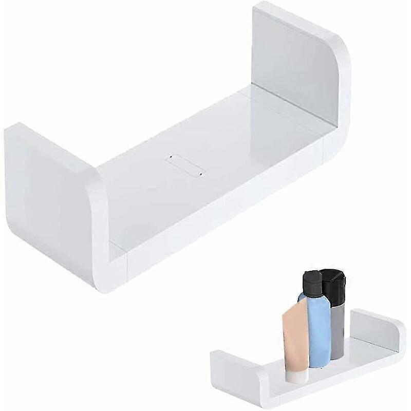 No Drilling Shower Shelf, Plastic Bathroom Shelves, Shower Caddy, Floating Shelves, U-Shape Floating Wall Shelves with Fixing Accessories, White(320X