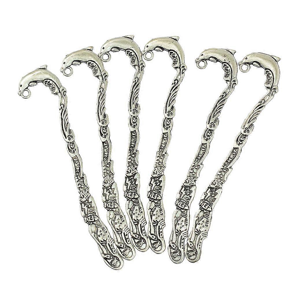 6pcs Alloy Dolphin Pattern Bookmarks With Hole Home Office School Stationery