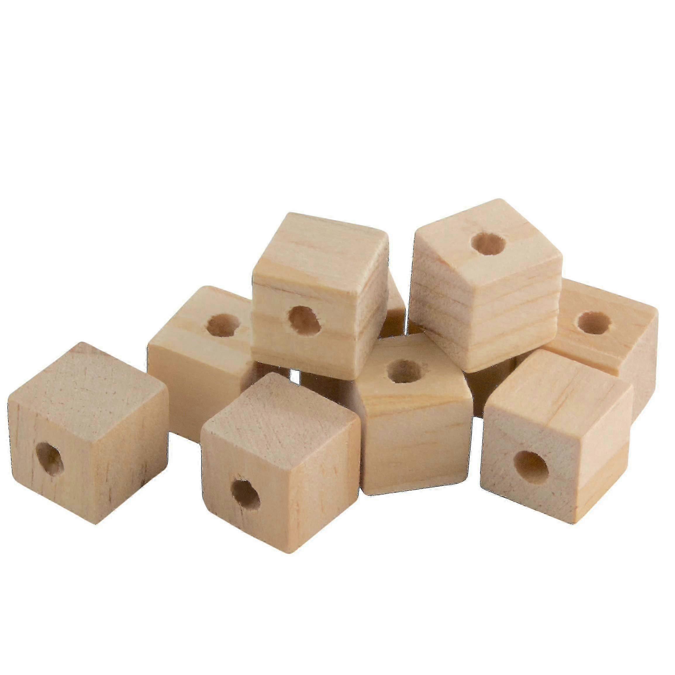 1" Wood Cubes With Holes - 50 Pack - Unfinished Solid Wood Beads For Diy Craft And Building Projects