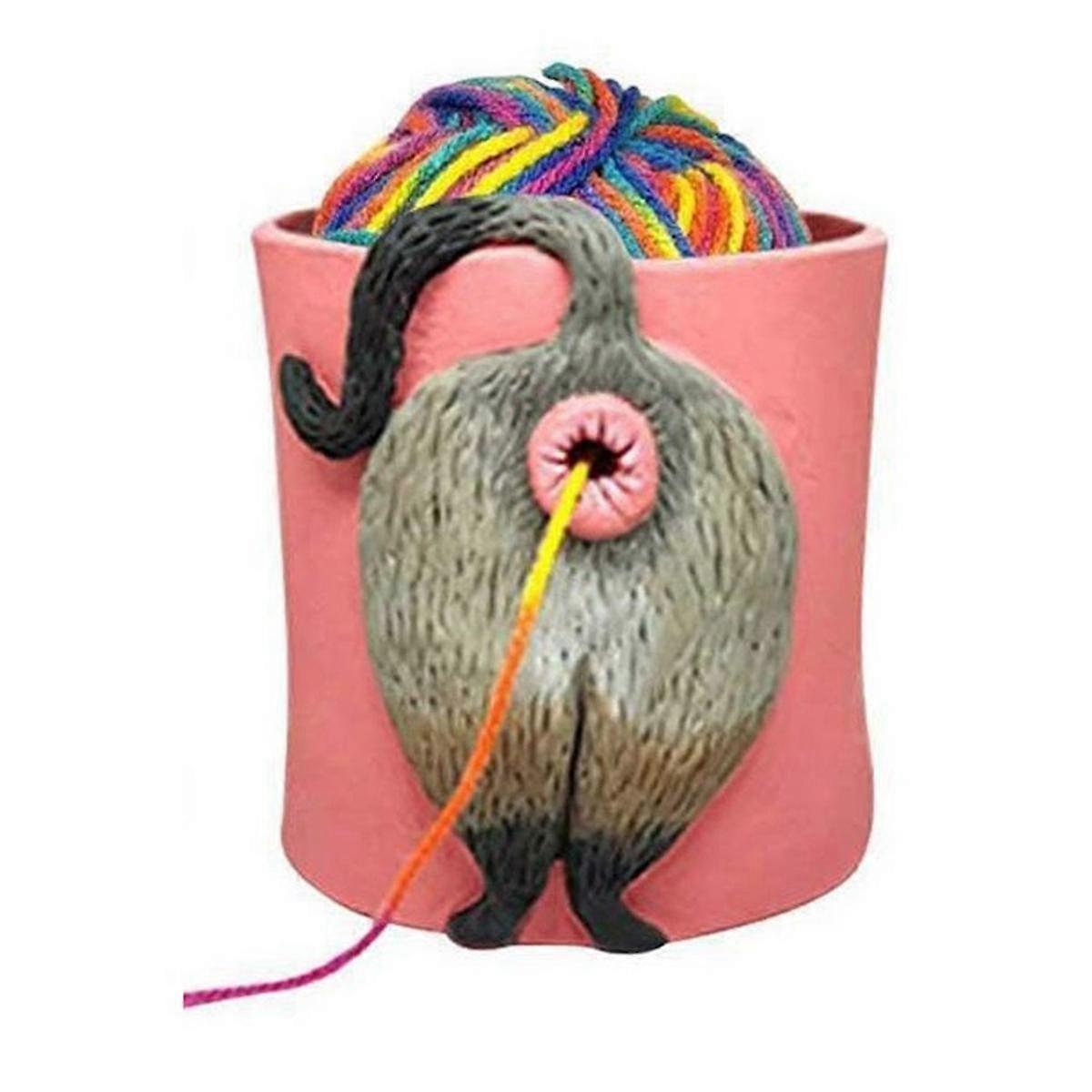 Cat Yarn Bowl Artwork with Hole Yarn Crochet Knitting Basket Yarn Holder Dispenser for Desktop Bedroom C