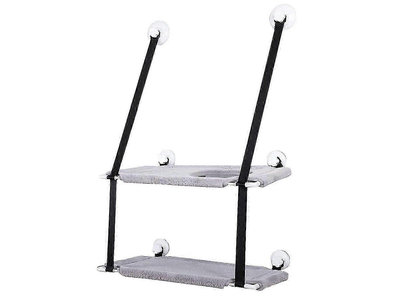 Double Layer Cat Hammock for Window Plush Cat Bed Warm Hanging Nest Grey
