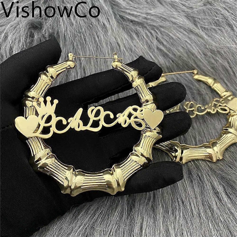 Bamboo Earring Big Size 30mm-100mm Custom Name Earrings for Women Personalized Gold Stainless Steel Bamboo Hoop Earrings Jewelry