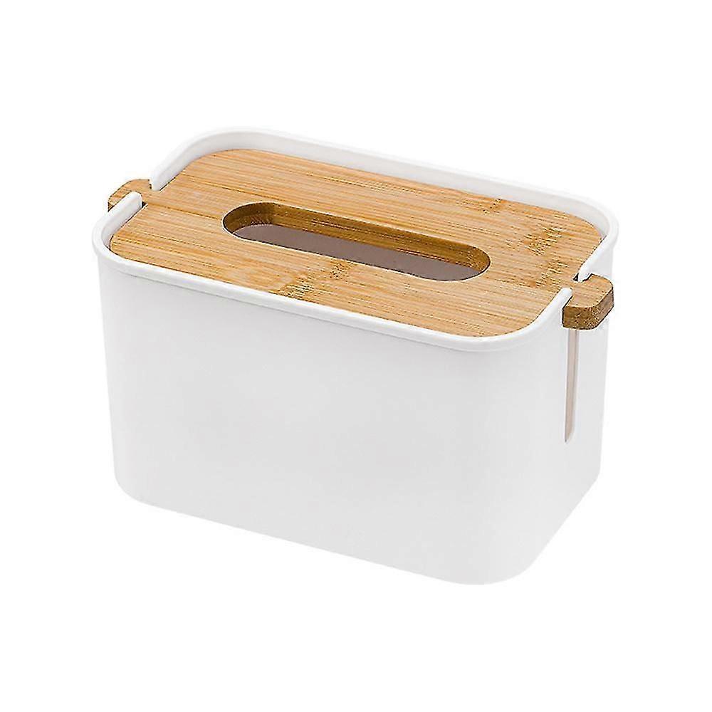 Bamboo + Plastic Storage Box, Can Lift Bamboo Cover Extraction Storage Box