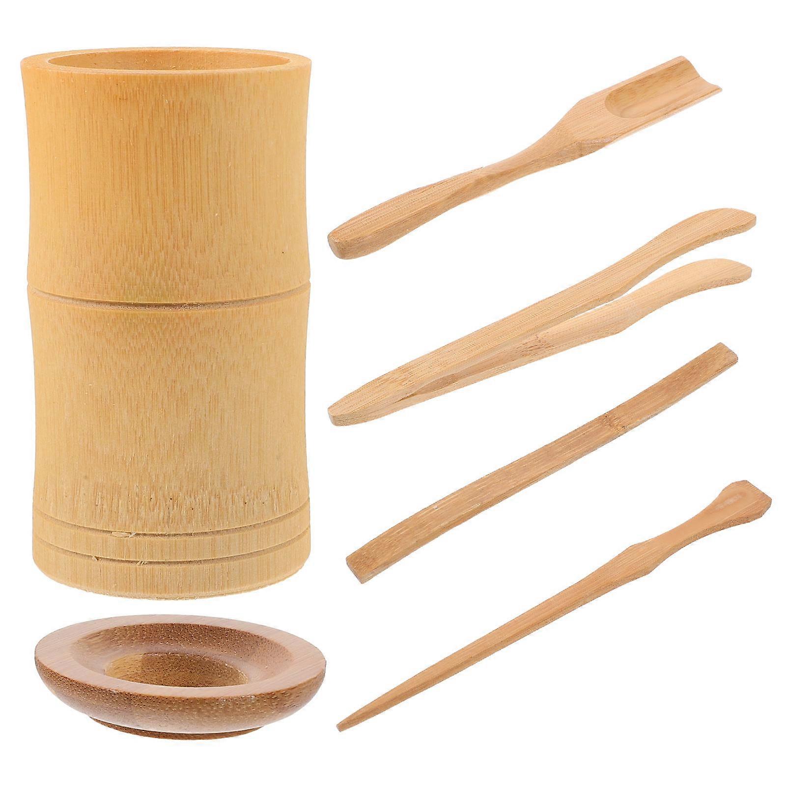 Bamboo Tea Ceremony Utensils 6-Piece Set with Storage Bucket for Tea Lovers Brown