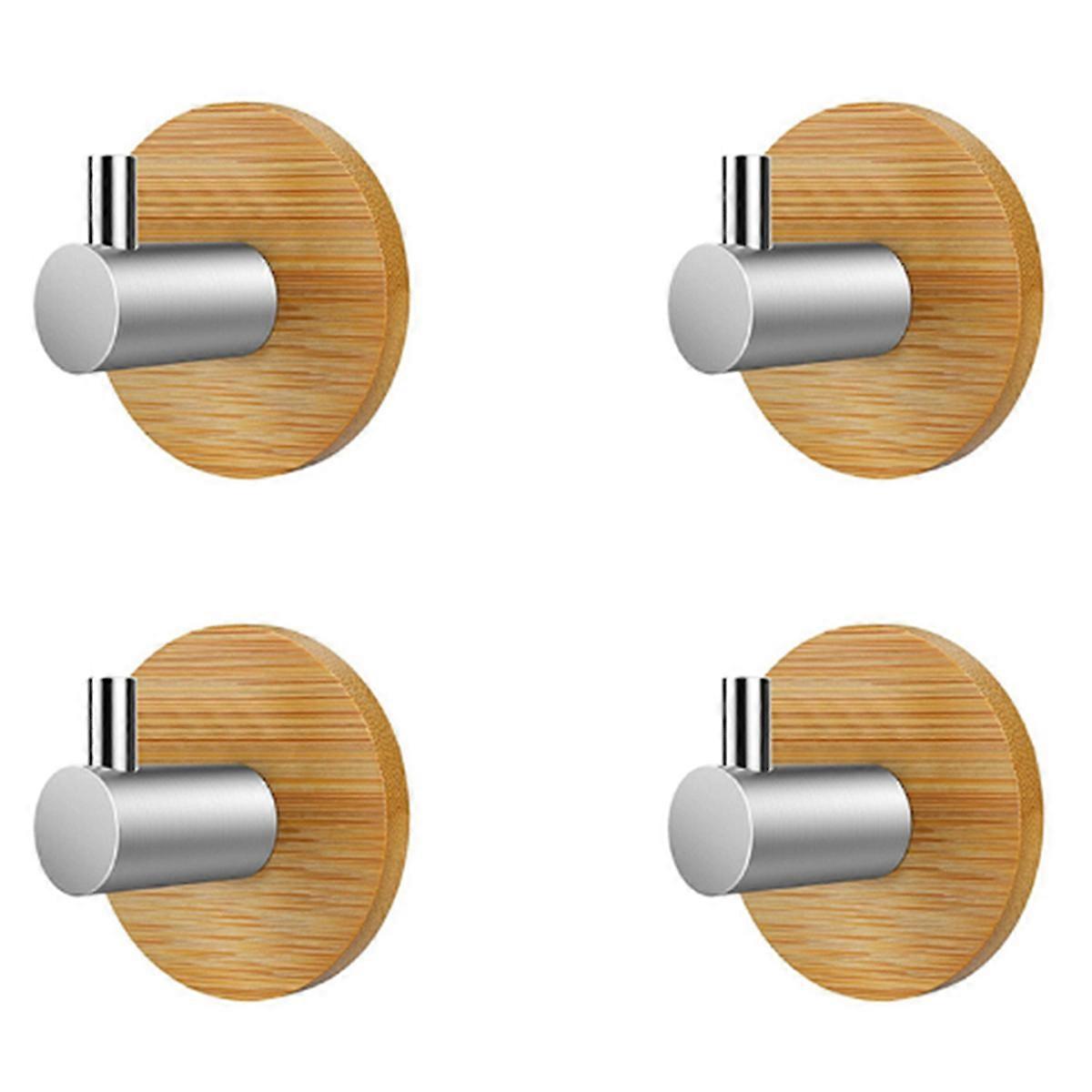 Bamboo Stainless Steel Hook Wall Clothes Bag Headphone Key Hanger (A)