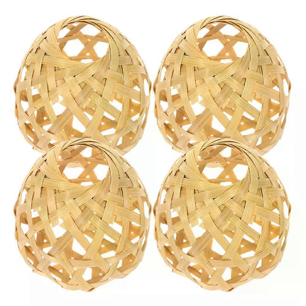 Bamboo Hanging Lampshade, 4 Pcs Mini Basket Boho Desk Lamp for Office