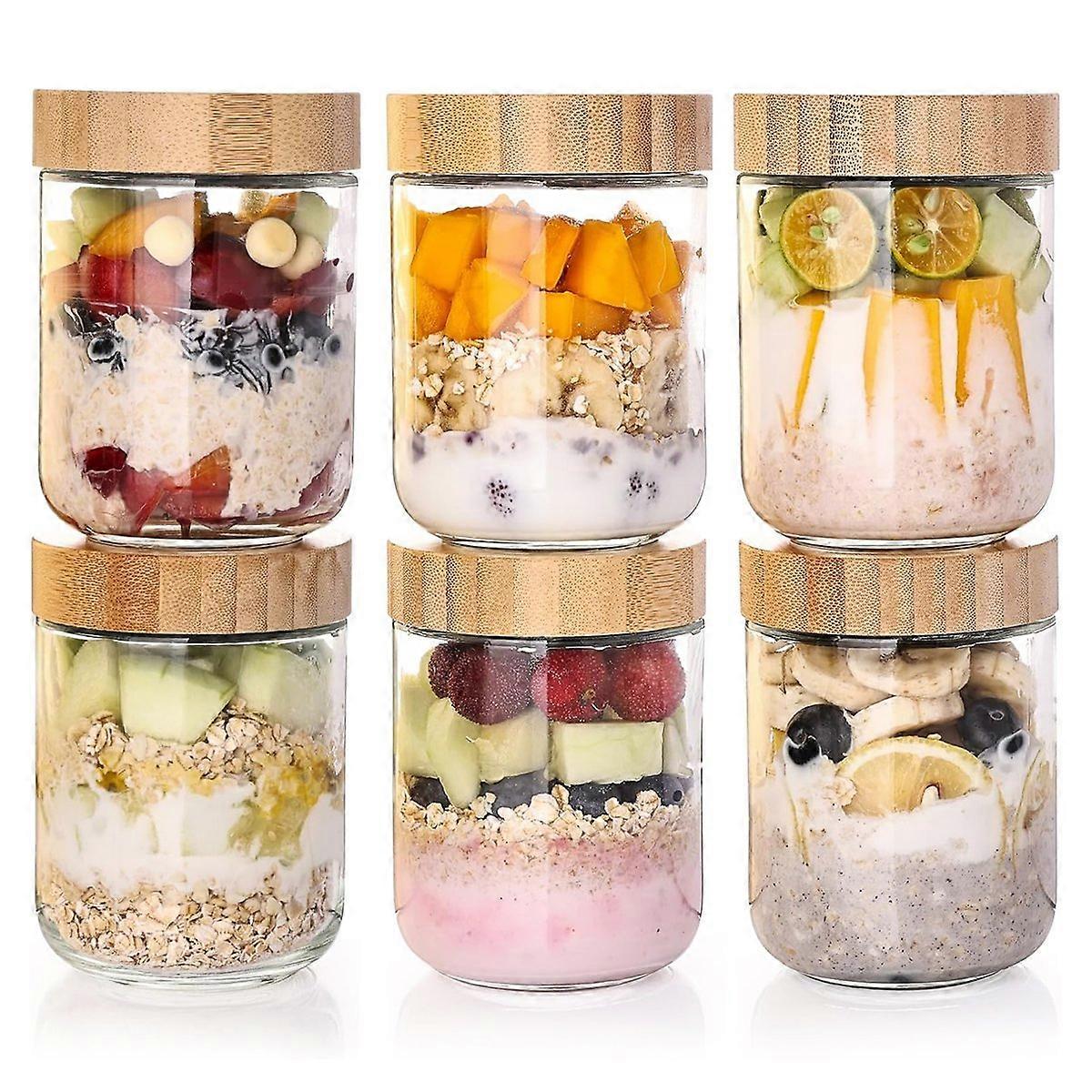 6-Pack Overnight Oats Containers with Bamboo Airtight Lids, 16oz Wide Mouth Salad Jars, Glass Food Storage Containers