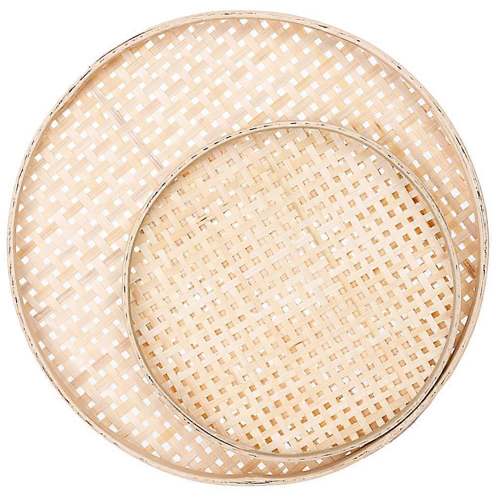 Bamboo Cooked Food Tray Hand-Woven Bamboo Tray Pastoral Style Kitchenware Storage Home Use 36.00X36.00X2.00CM 2Pcs