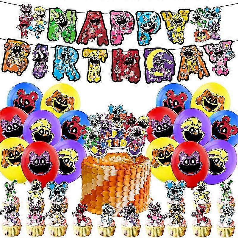 Smiling animal theme birthday party decoration smiling critters birthday flag cake card balloon